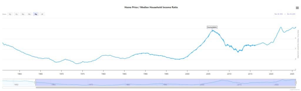 In recent years, the price-to-income ratio reached around 5–7x income, far above historical norms.
